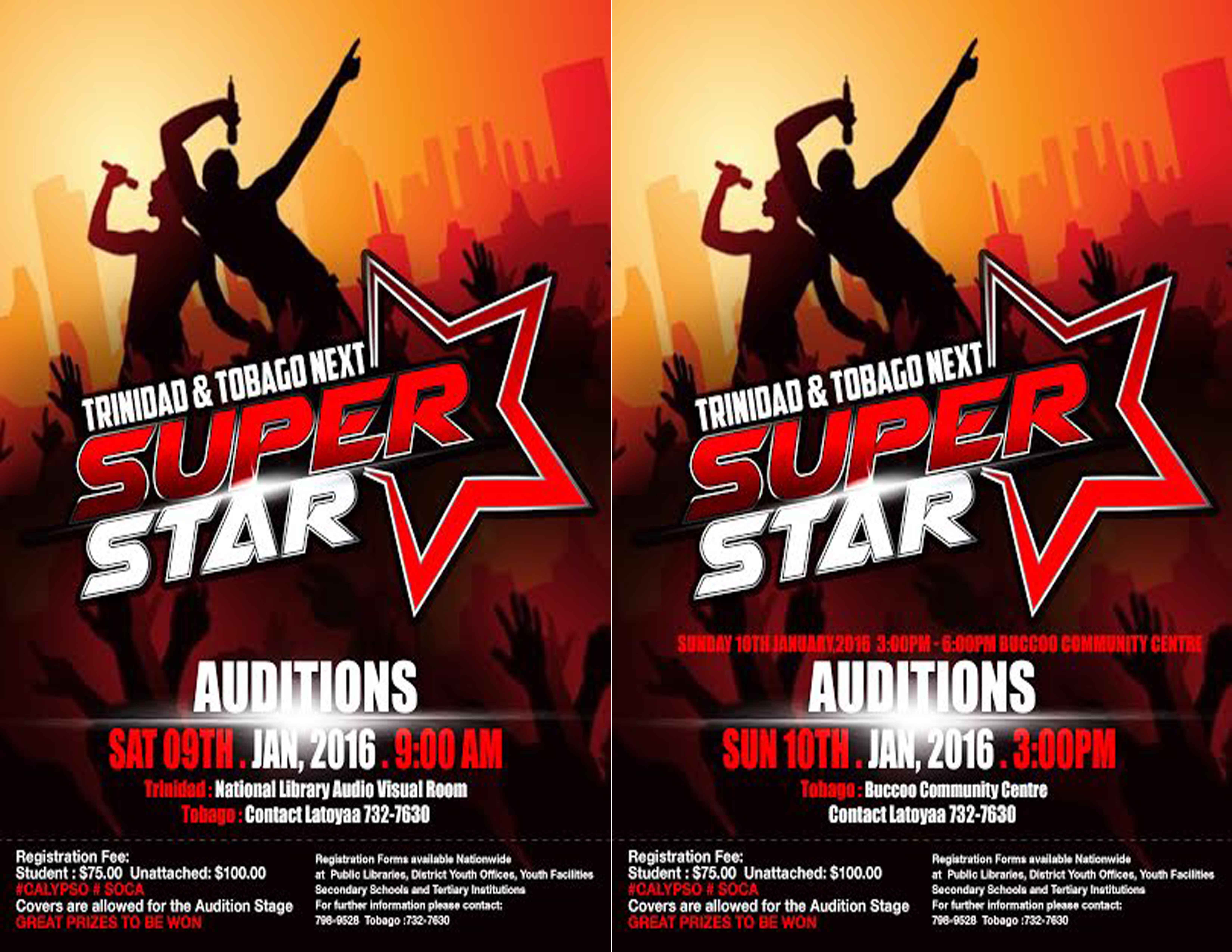 Trinidad and Tobago Next Super Star is a Soca and Calypso competition for youth between the ages of 15-29 with GREAT PRIZES TO BE WON.